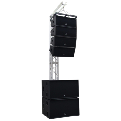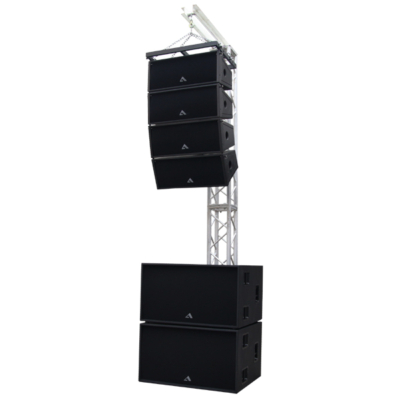 Line Array Complete Set, was designed in a special way to get a quality of formed sound in a variety of acoustic conditions, as indoors and open areas. The total capacity of the kit is 22.4 kW. at a maximum pressure of 138 dB., that has strict directivity of the sound waves in the vertical plane. Because of such conditions, the direction of the sound energy allows precise control and focus it in position with the maximum efficiency.